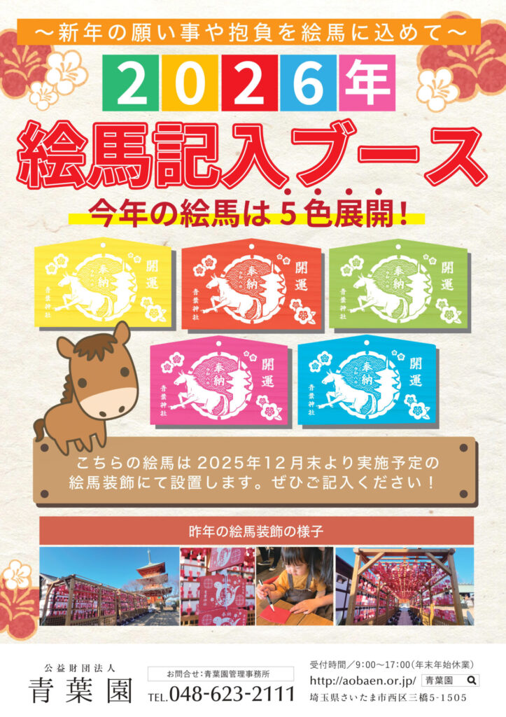 お彼岸期間中は休憩所と各駐車場の臨時花売り場で「絵馬」の記入ブース(無料)を設けています。9/20(土)~9/26(金)実施 – さいたま市西区のお墓・霊園 公益財団法人【青葉園】